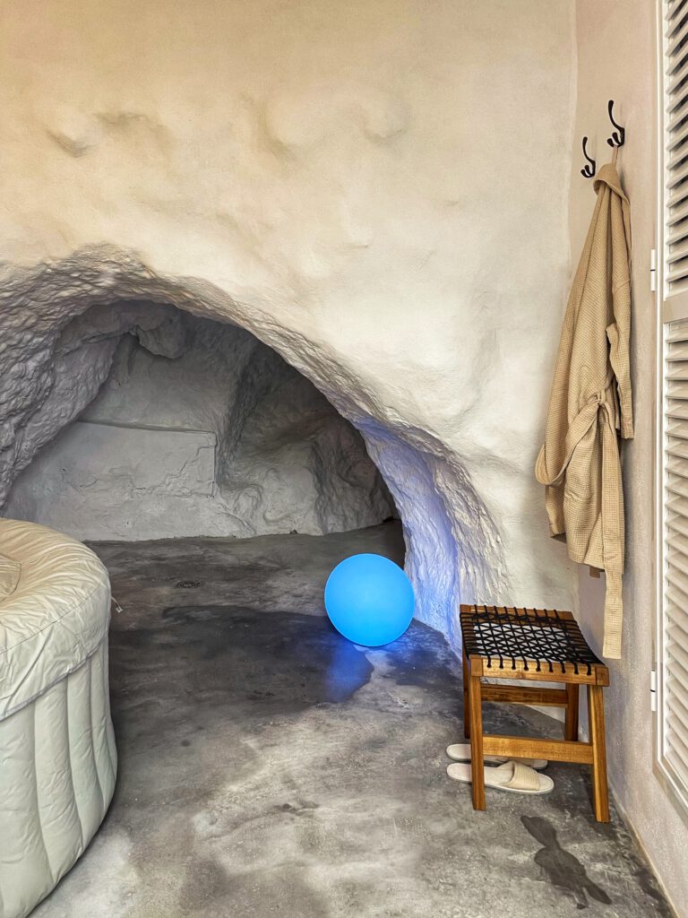 The small but fully equipped kitchen and rain shower bathroom provide all the amenities you need, from a Nespresso machine to an induction hob and a washing machine. Step outside to the sunlit patio terrace surrounded by greenery, or treat yourself to the hidden gem of the house: a private bodega with a jacuzzi – available to book in advance as an exclusive wellness experience.